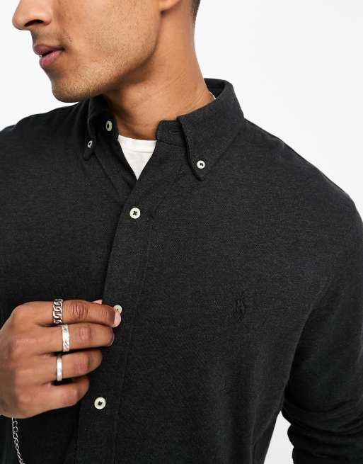 Product id: Polo ralph lauren slim fit pique shirt player logo button top down in grey marl