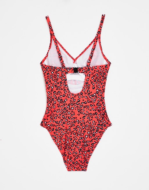 Product id: Red leopard top print swimsuit